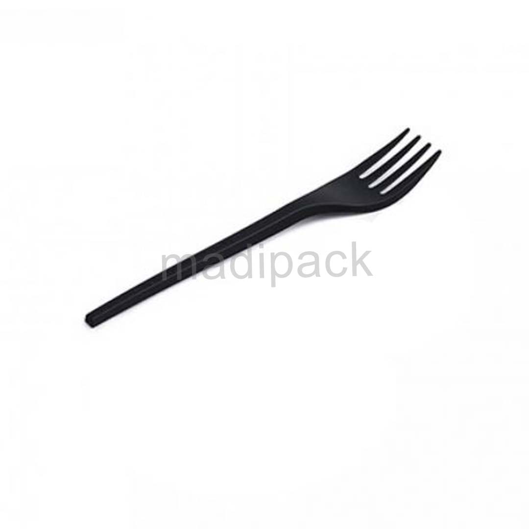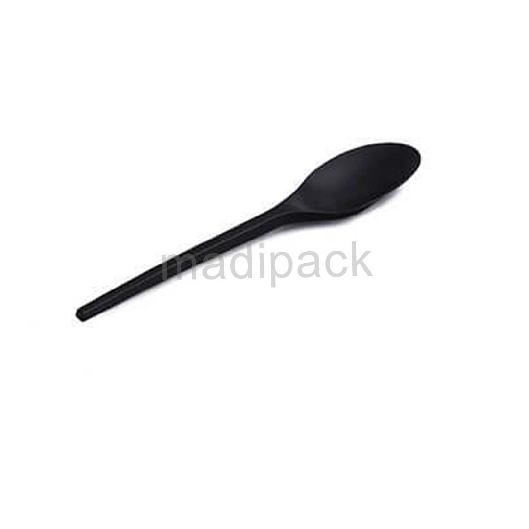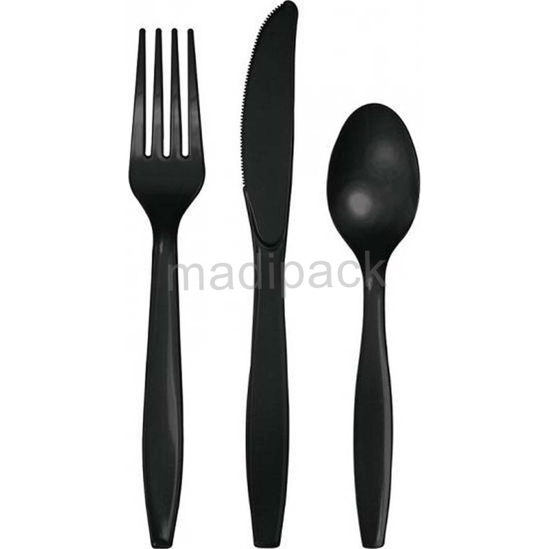 BLACK PS (polystyrene) plastic knives, spoons & forks , 180 mm long.