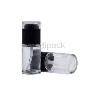 Tube carré brillant transparent avec capuchon doré/noir – Sophistication et brillance.