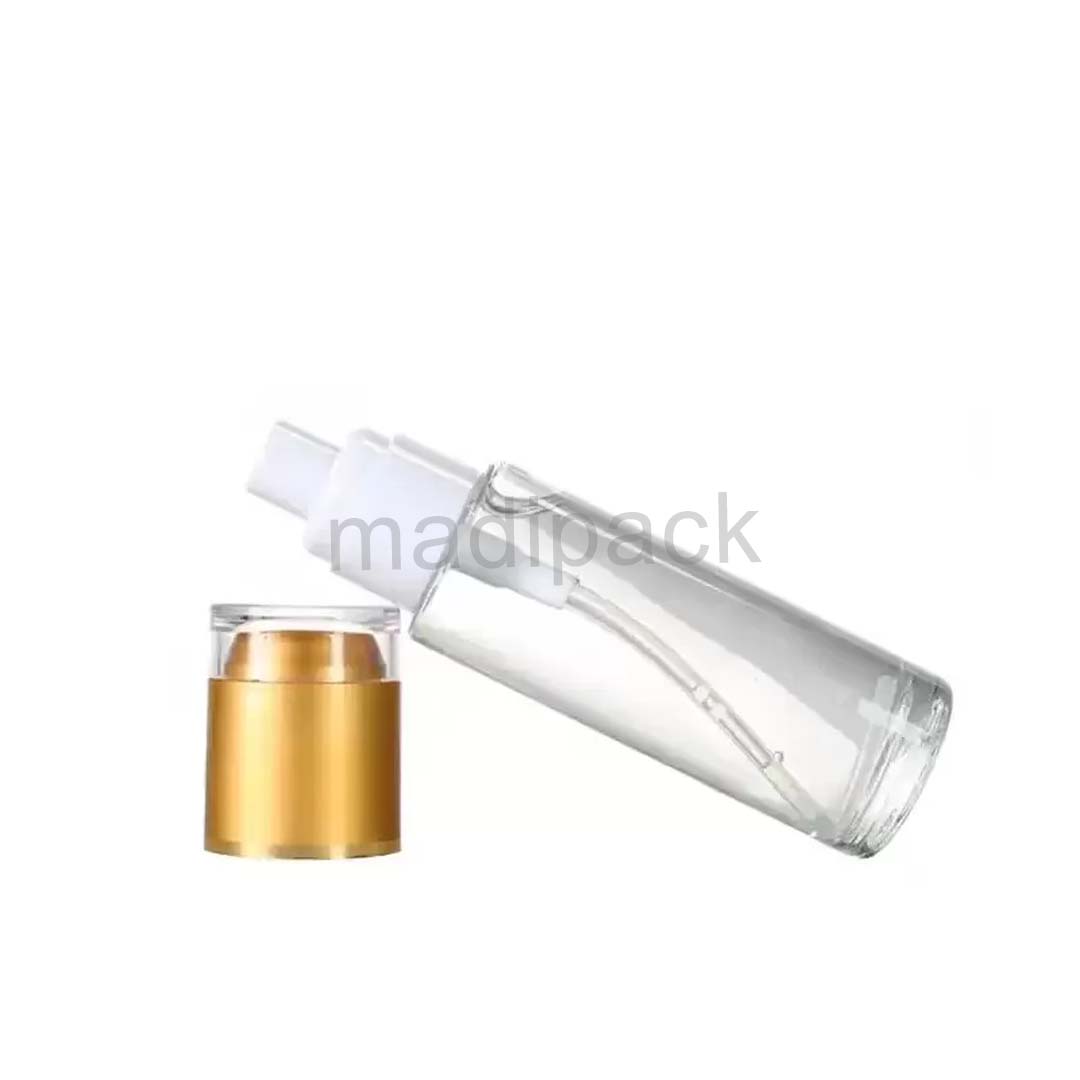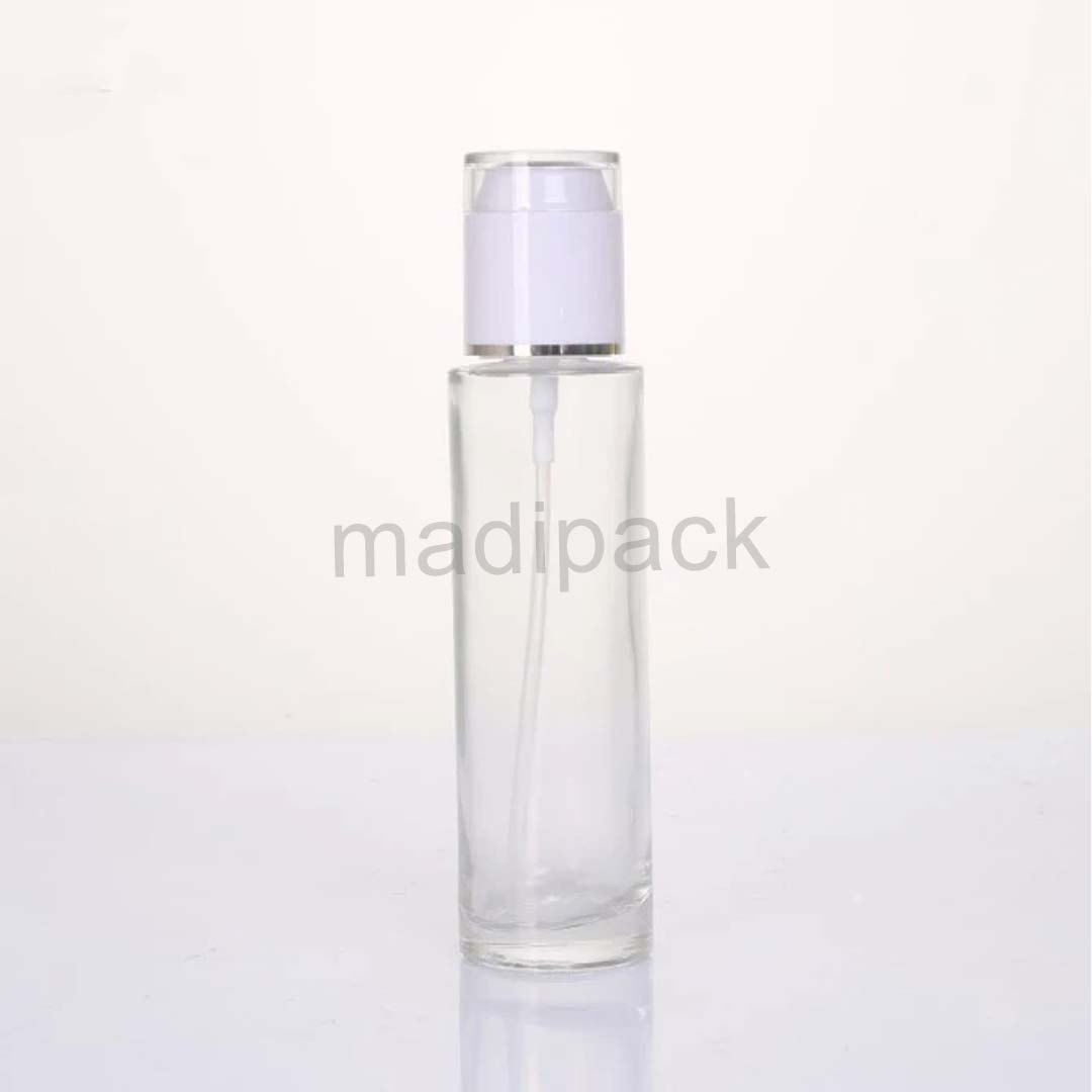 Clear Glass Foundation Bottle With Pump For Cosmetic Packaging