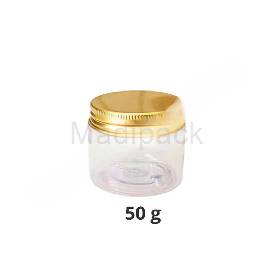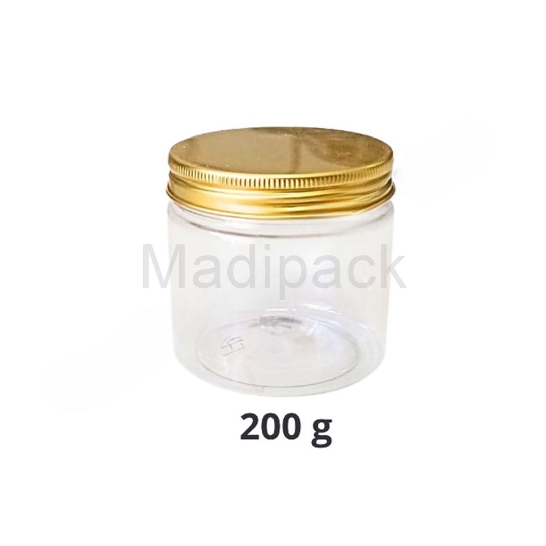 These clear plastic jars with aluminum lids offer excellent value for money for those looking for an extra touch of elegance.