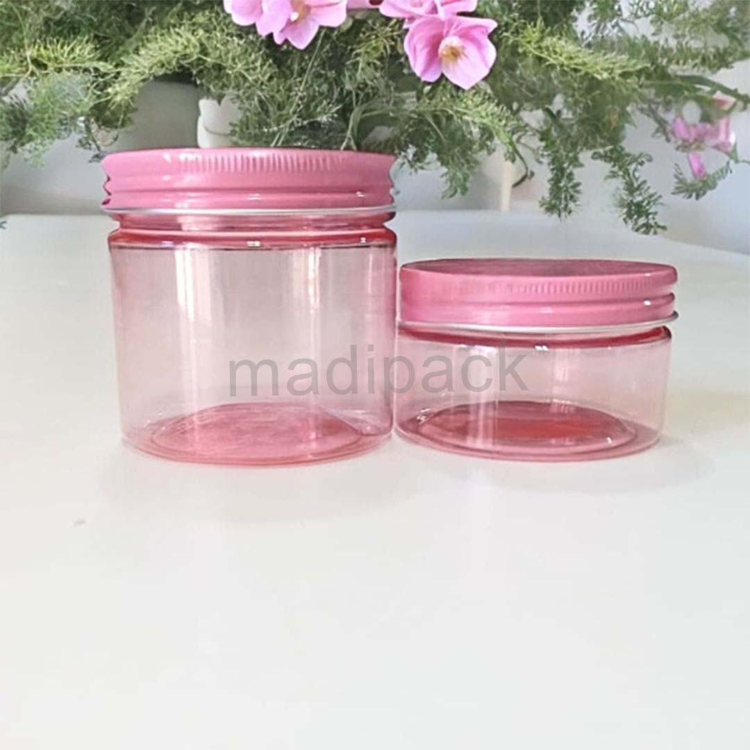 These clear plastic jars with aluminum lids offer excellent value for money for those looking for an extra touch of elegance.