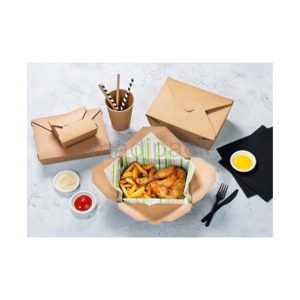 Eco-friendly and recyclable kraft box for selling chocolates or small portions of takeaway meals.