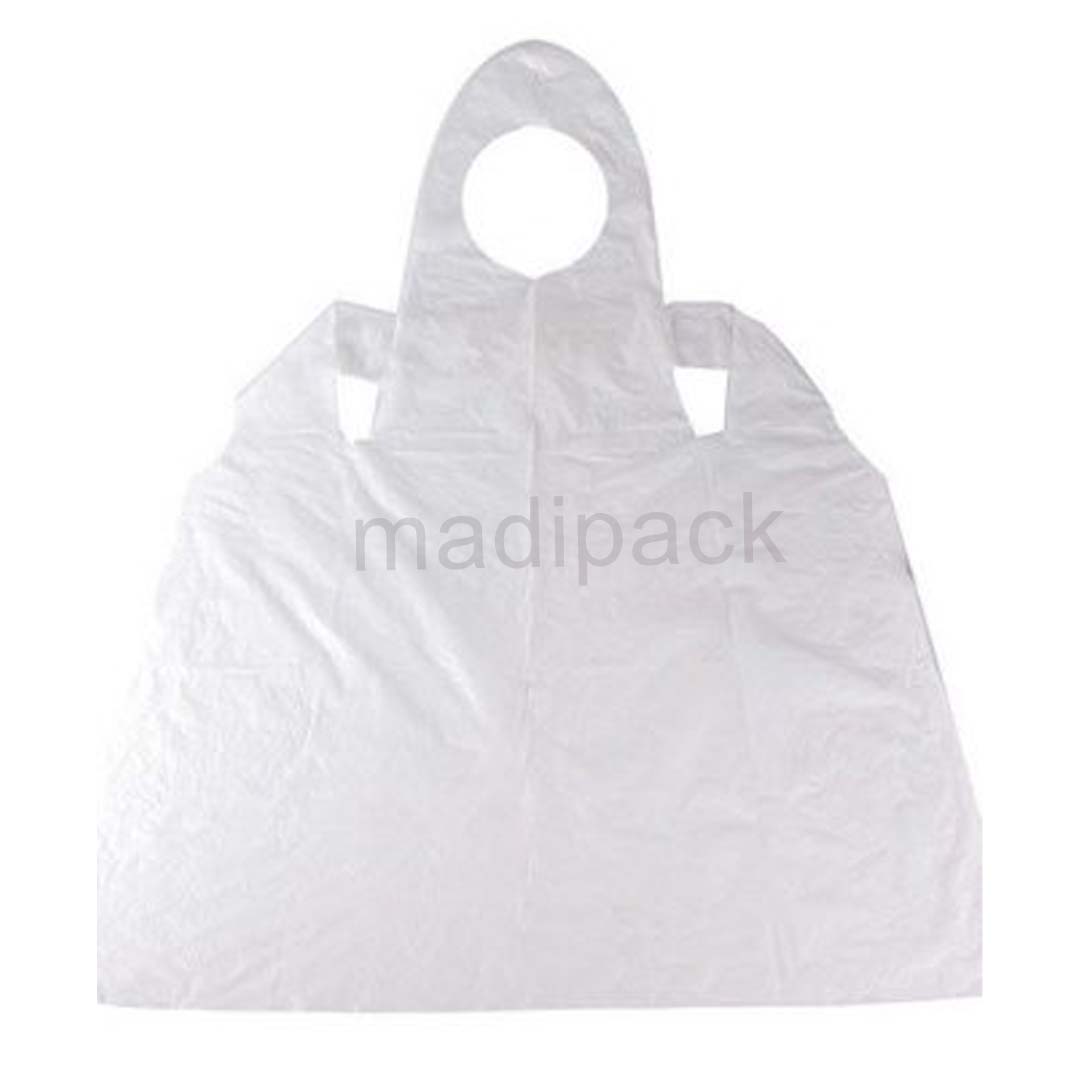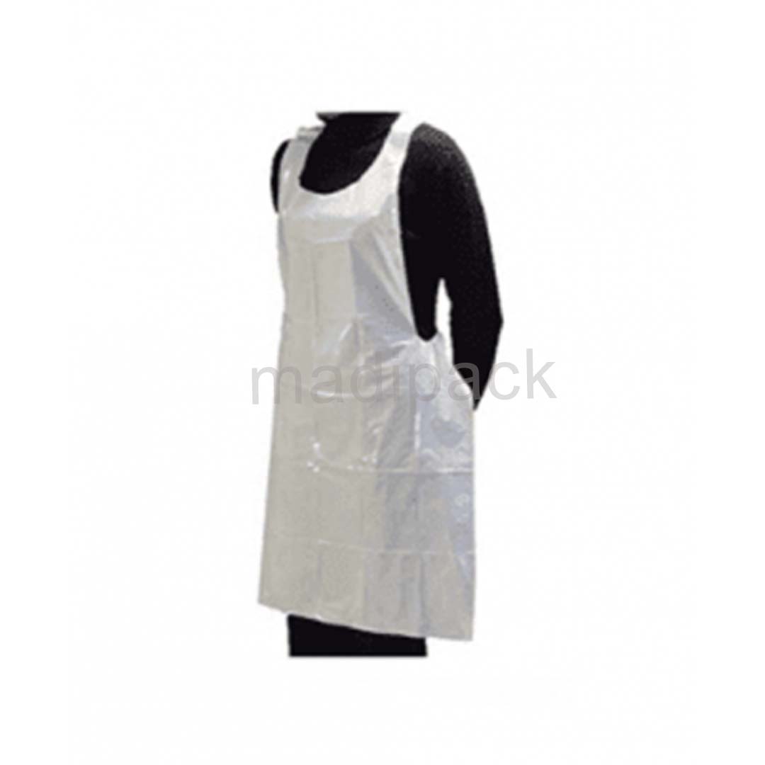 Transparent polyethylene apron, designed to provide good protection for the trunk and legs, both in the medical and industrial or food sectors.