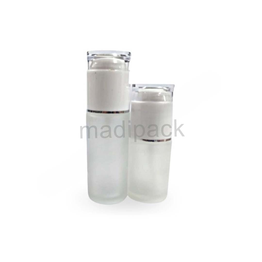 The frosted glass bottle, complete with a pump, represents the pinnacle of high-end cosmetic packaging. Designed for quality products such as serums, lotions, creams, and foundations, it embodies elegance and sophistication.