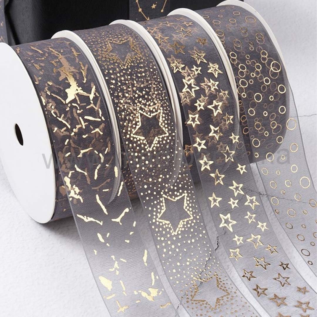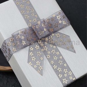Gold Foil Printed Organza Ribbon for Packaging