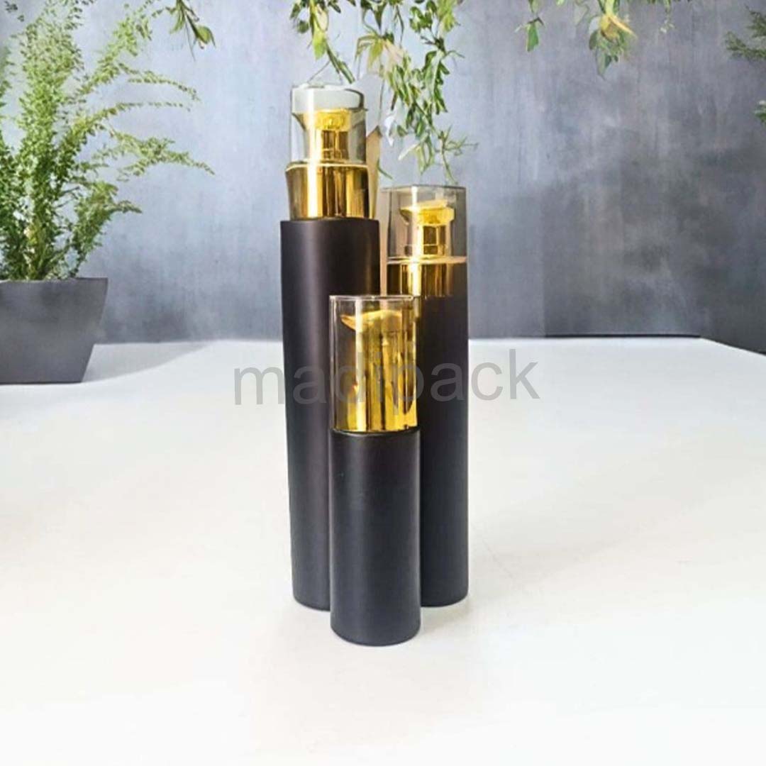 These cosmetic bottles embody the essence of sophistication and refinement. Crafted from high-quality black glass with gold-plated sprayers, they combine refined design with optimal high-end functionality.