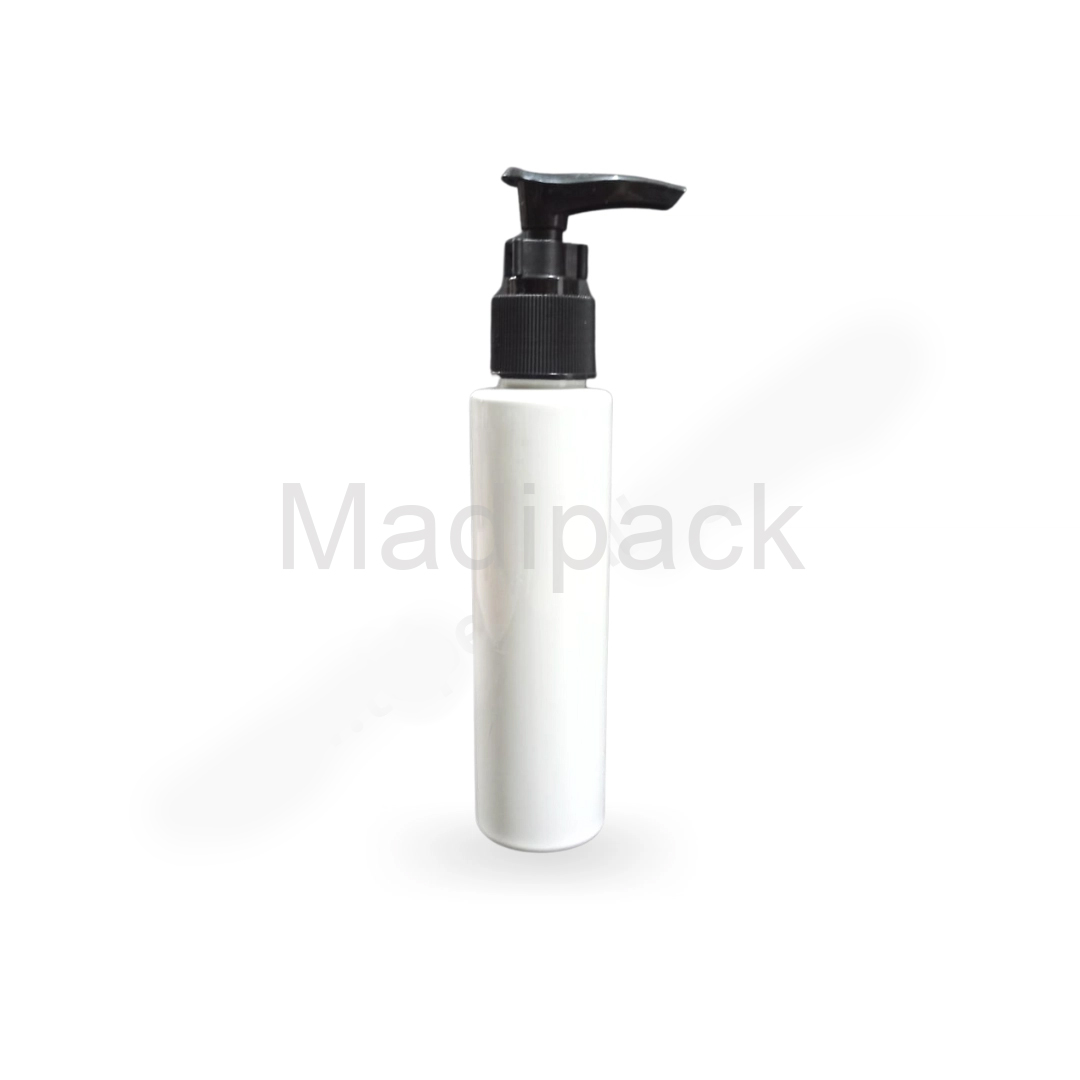 100 ml bottles in opaque white plastic.