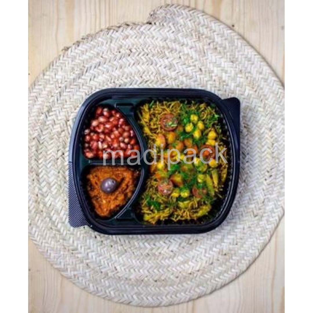 The black microwaveable food containers , with a capacity of 1250 ml divided into one, two or three compartments, are ideal for your hot meals for one person. They combine design, elegance and practicality. This food tray is perfectly suited to the microwave and is completely airtight thanks to its lid (sold separately).