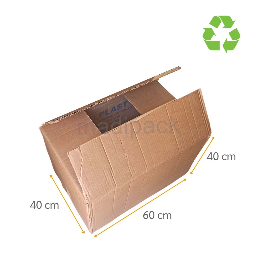 Reconditioned Cardboard Box 60 x 40 x 40 cm, guarantees ideal resistance for packaging, protects all your products in complete safety.
