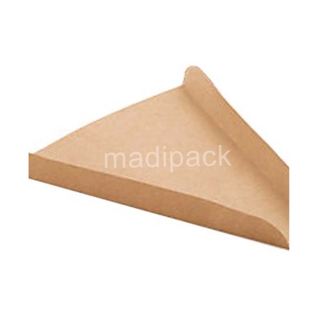 Recycled cardboard triangle for pizza/crepe slices. It measures 22 x 22 cm. It is recyclable and biodegradable.