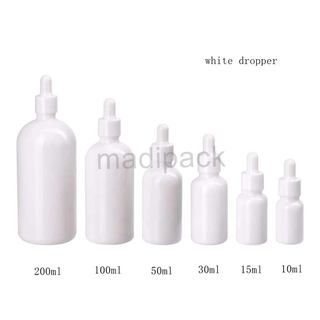 Flacon en verre blanc avec pipette compte-gouttes